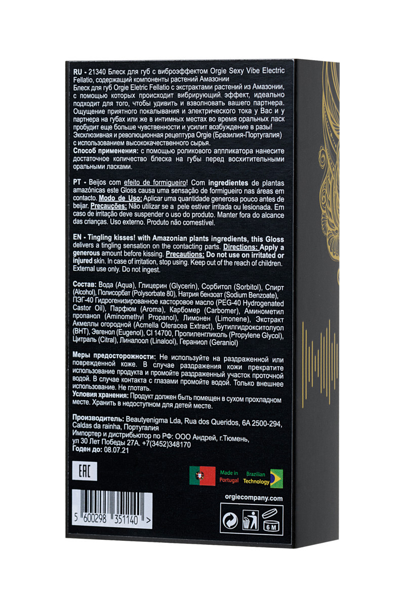 Могут ли поцелуи вызывать электрическую искру и страсть, подобную бразильской? Да, если их дополняет блеск для губ с вибрирующим эффектом Orgie Sexy Vibe Electric Fellatio.