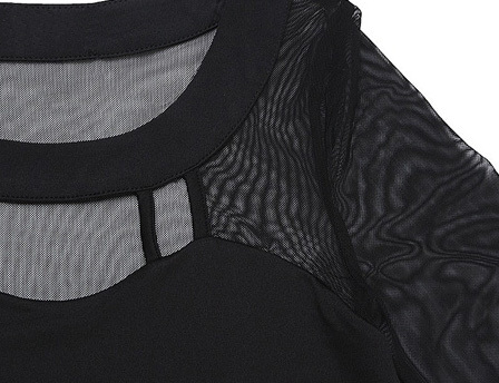 Джемпер выполнен из тонкого трикотажа со вставками из микросетки.