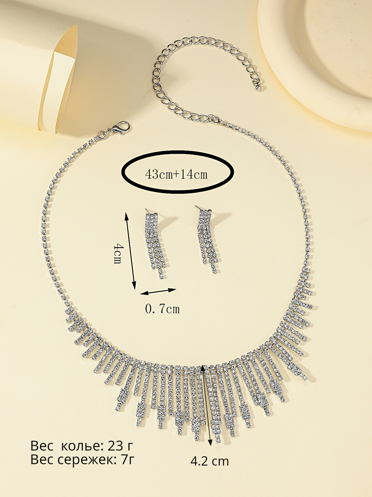 Длина колье: 43 см + 14 см удлиняющая цепочка
