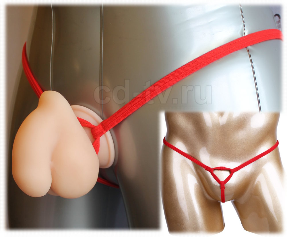 Красные стринги для фиксации протеза-обманки