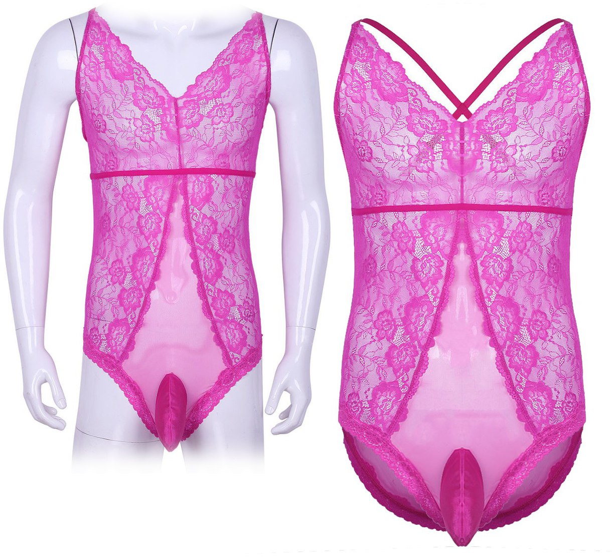 Ярко-розовое боди мужского кроя с кружевной отделкой. Регулируемые бретельки, модель с красивым декольте, приталенный силуэт.