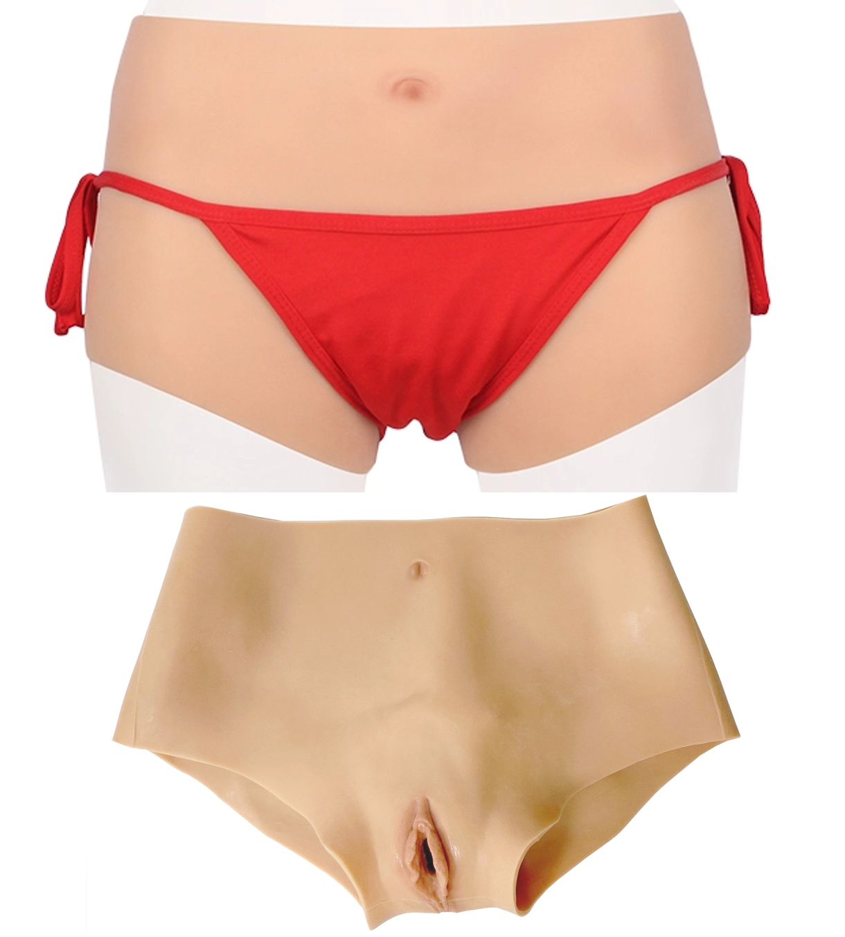 Накладная вагина в виде трусиков позволяет быстро перевоплотиться в женщину для ролевых эротических игр с переодеванием.Перед надеванием обильно опудрите тело и трусы изнутри тальком.