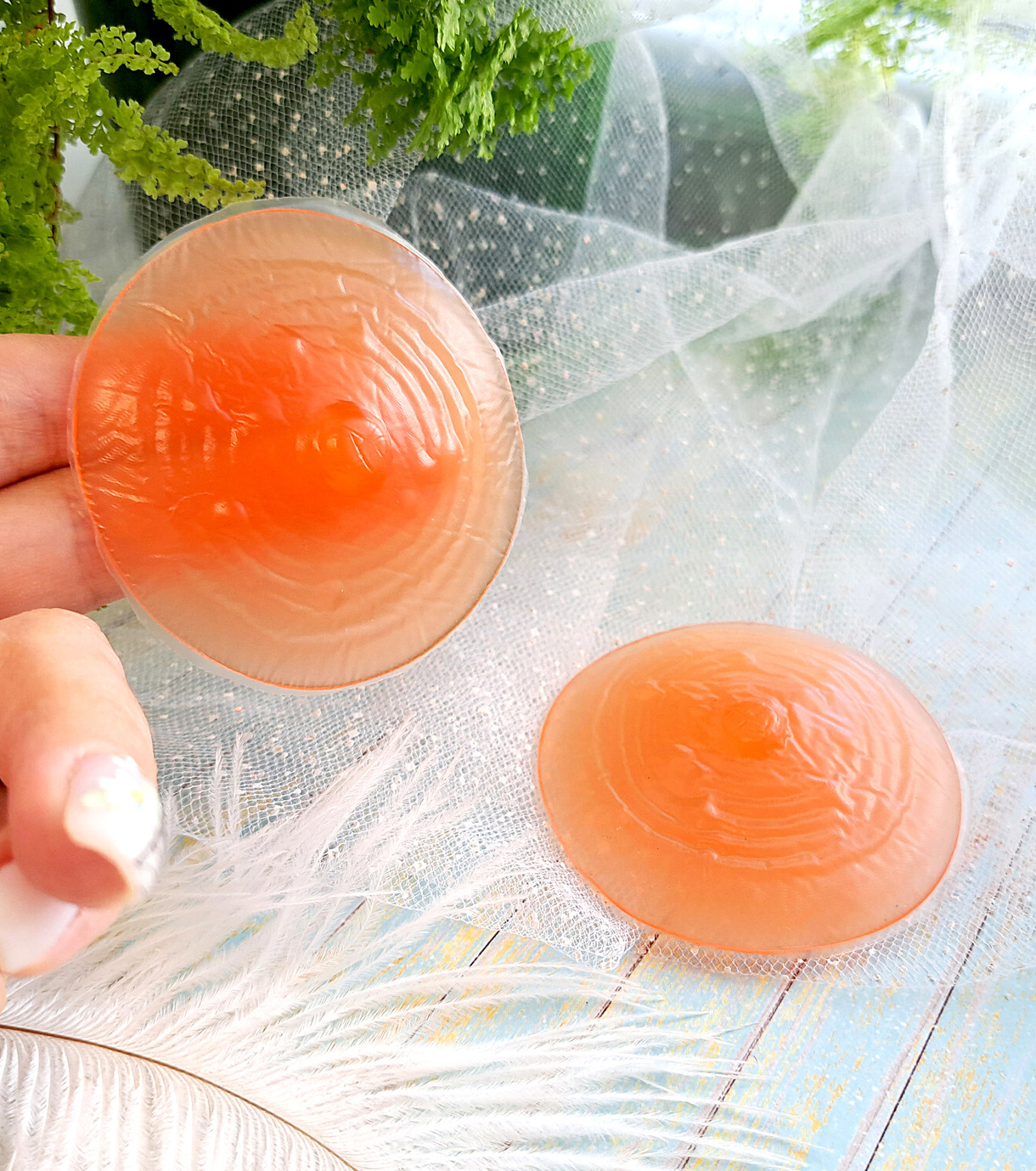 На обратной стороне сосков нанесен многоразовый клеевой слой из липкого силикона. Не пачкает одежду. Для восстановления клеящих свойств промыть мыльной водой и высушить на открытом воздухе.