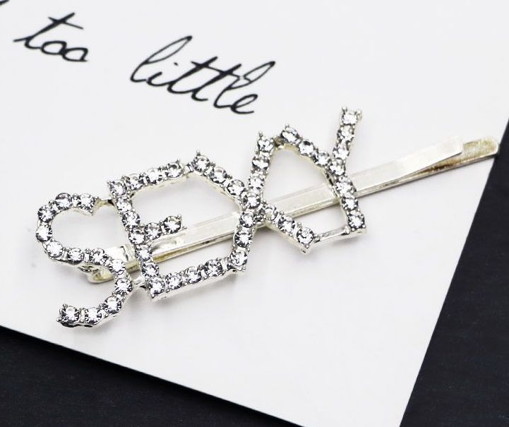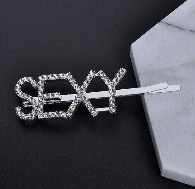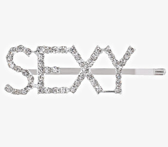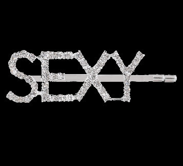 Невидимка серебристого цвета, на которой стразами написано слово "SEXY", украсит и раскрепостит любую девушку!