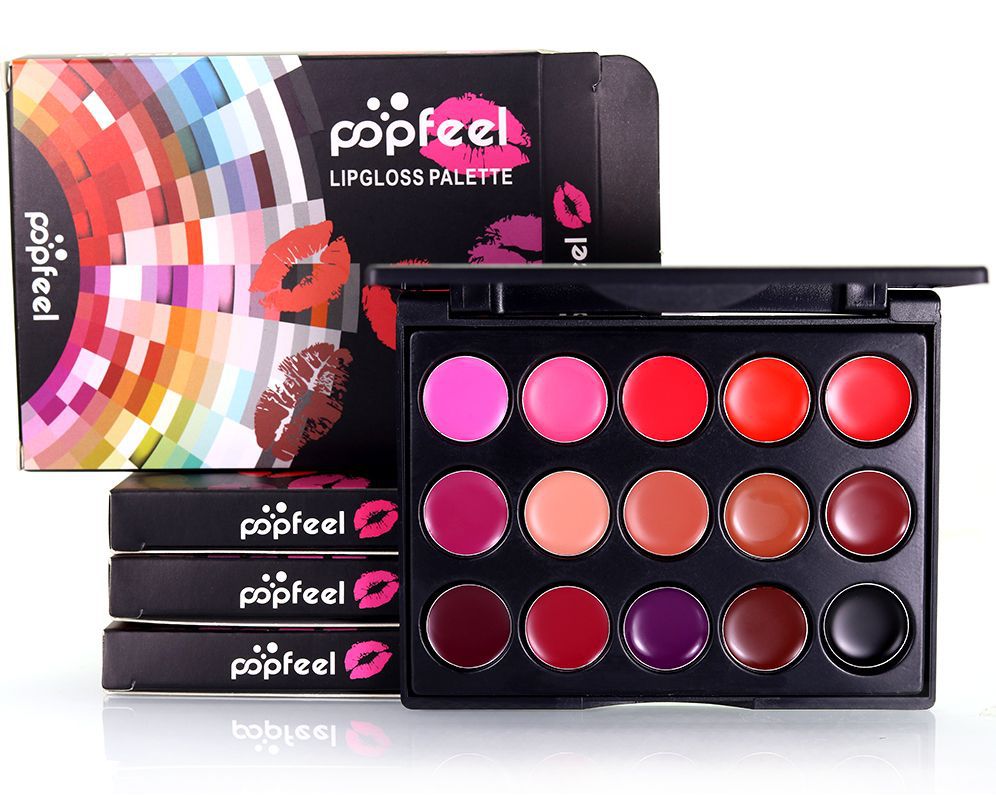 Палетка размером 10x8 см вмещает в себя 15 оттенков (розовые, персиковые, морковные, малиновые, коричневые и 1 черный)