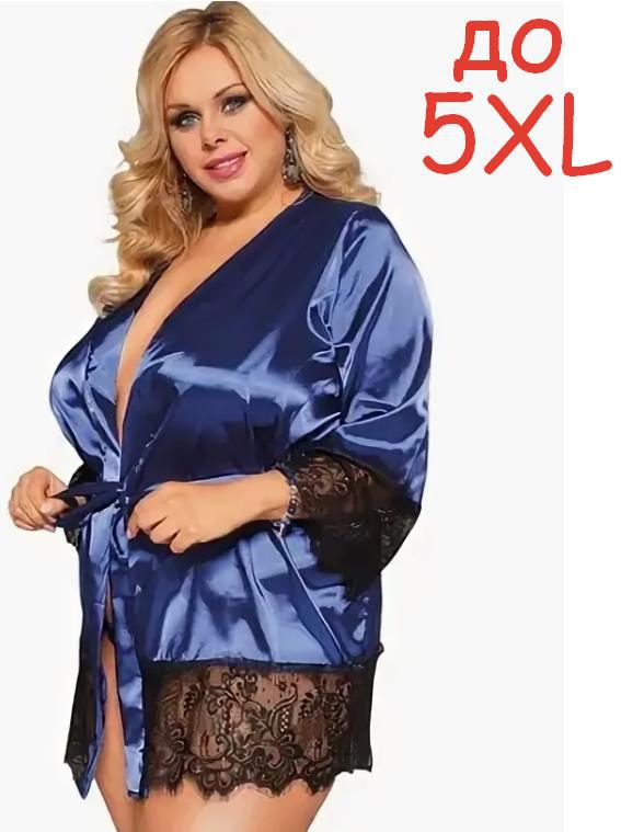 Атласный пеньюар с отделкой из нежного черного кружева. Пеньюар выпускается в размере S-M, L-XL, 2Xl-3XL, 4XL-5XL