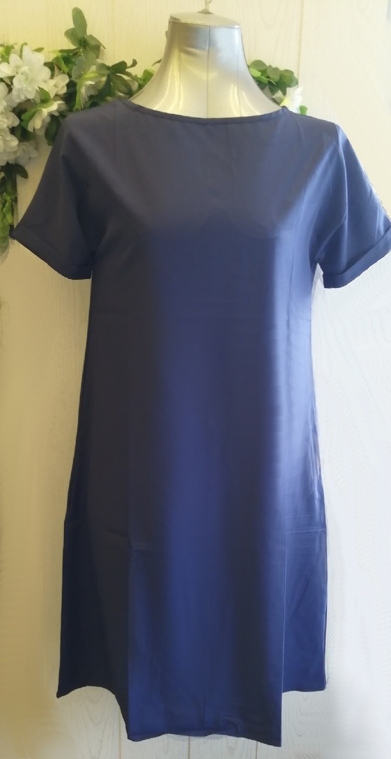Платье прямого кроя с кармашками по боковым швам.