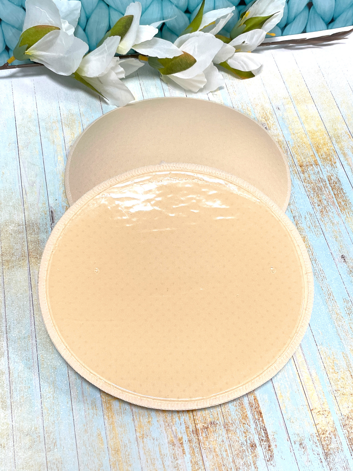 На внутренней поверхности накладки имеют многоразовый клеевой слой, который позволяет зафиксировать накладки на теле и препятствует их смещению под одеждой.
