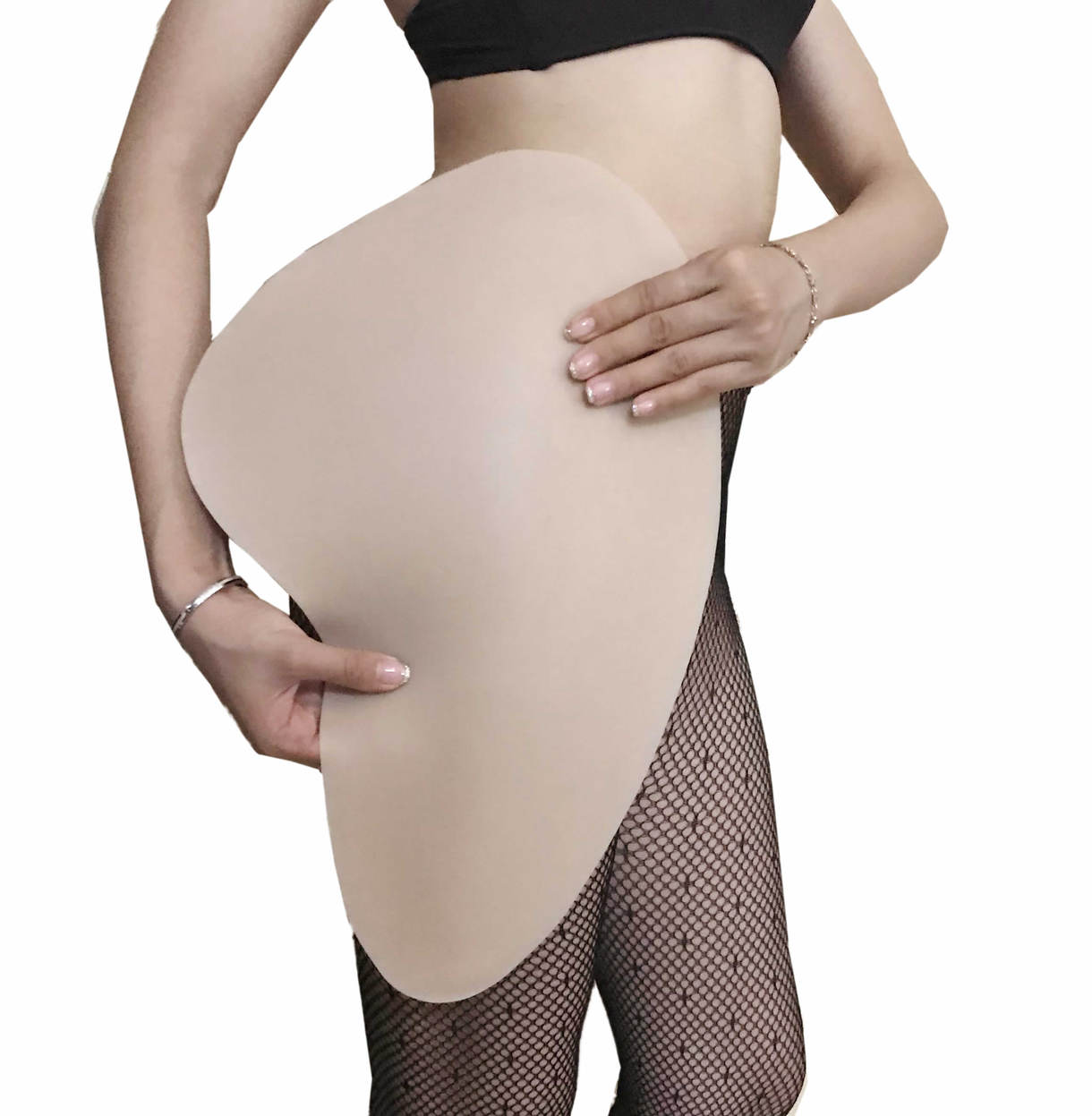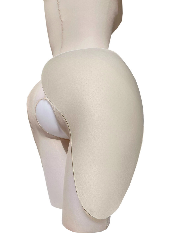 Для правильного и красивого размещения накладных бедер и получения ровного силуэта необходимо использовать плотные колготки или леггинсы.