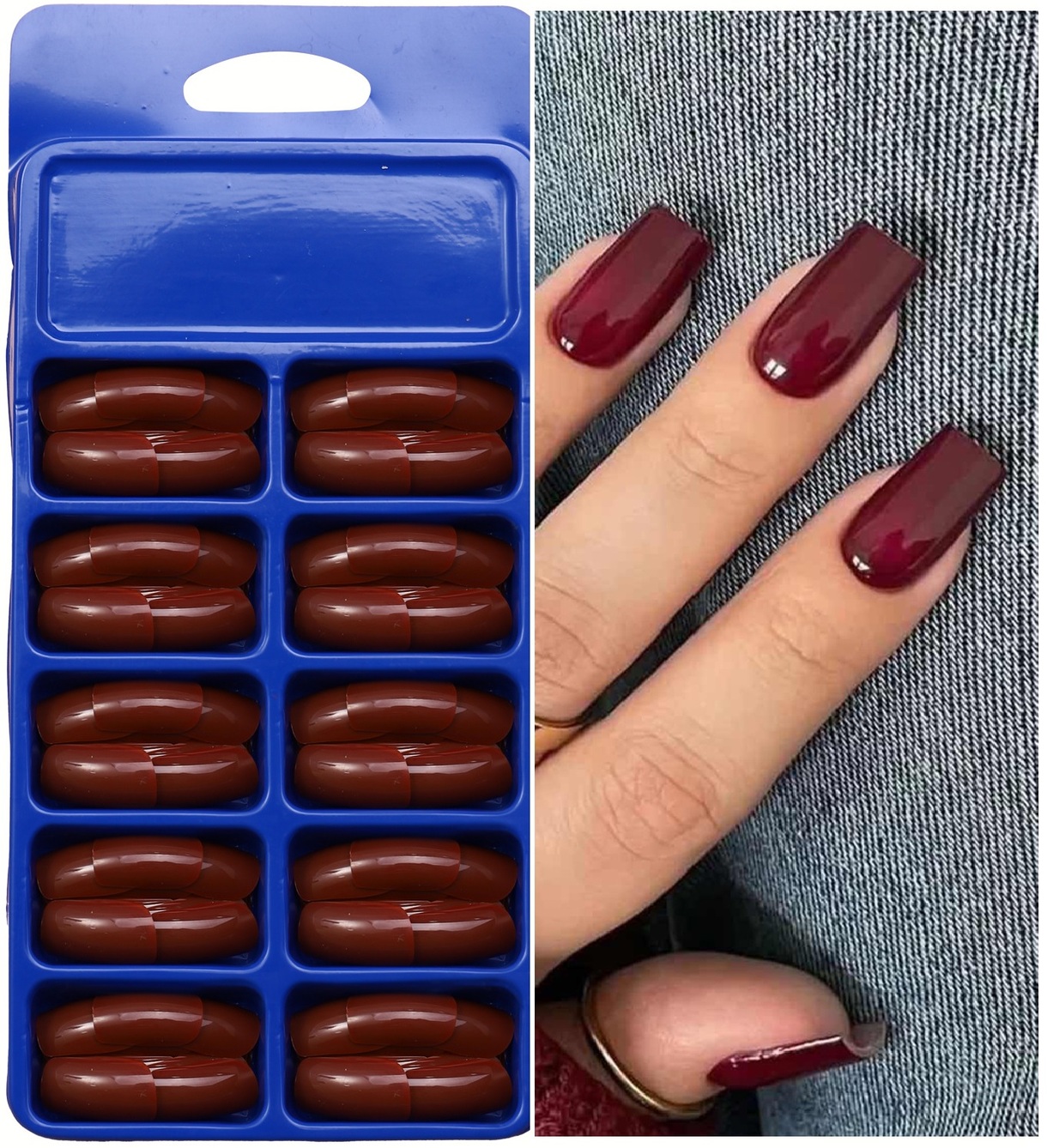 Темно-бордовые накладные ногти