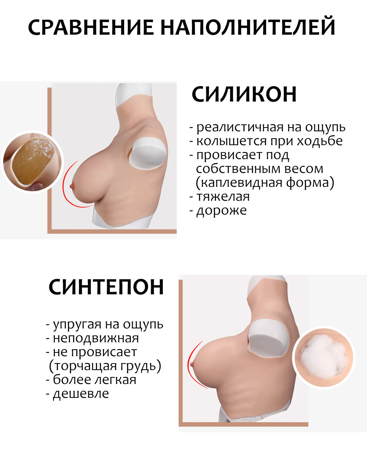 для торсов с наполнением груди силиконом: