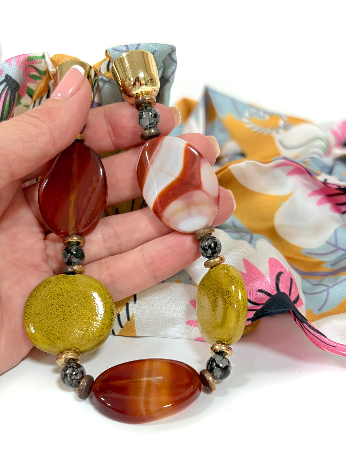 Состав: полиэстер, бижутерный сплав, полистоун