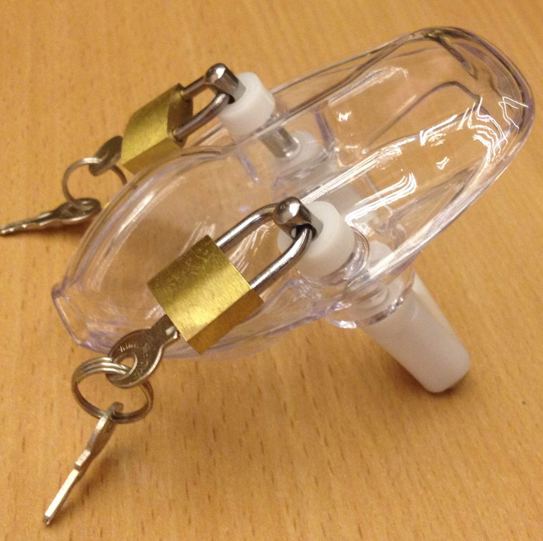 Одно из преимуществ данной модели - из пояса такой конструкции действительно невозможно выбраться. Член даже если удастся вынуть, то вставить обратно точно не получится - все очень плотно.